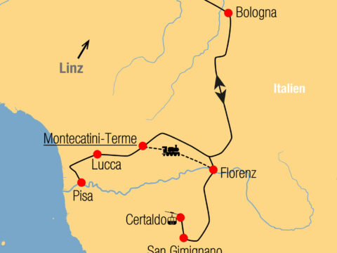Von der Costa della Versilia im Westen bis zur Riviera Romagnola im Osten spannt sich der Bogen bei dieser Entdeckungsreise zu den…