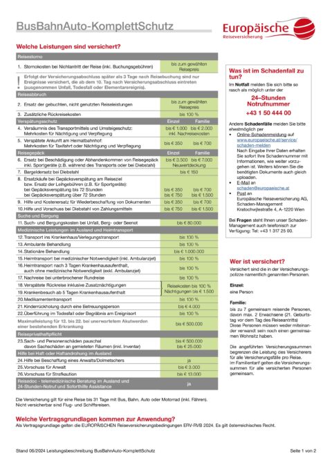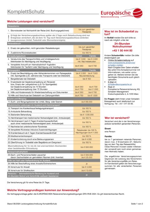 Versicherungsschutz während der Reise / Reiseversicherung